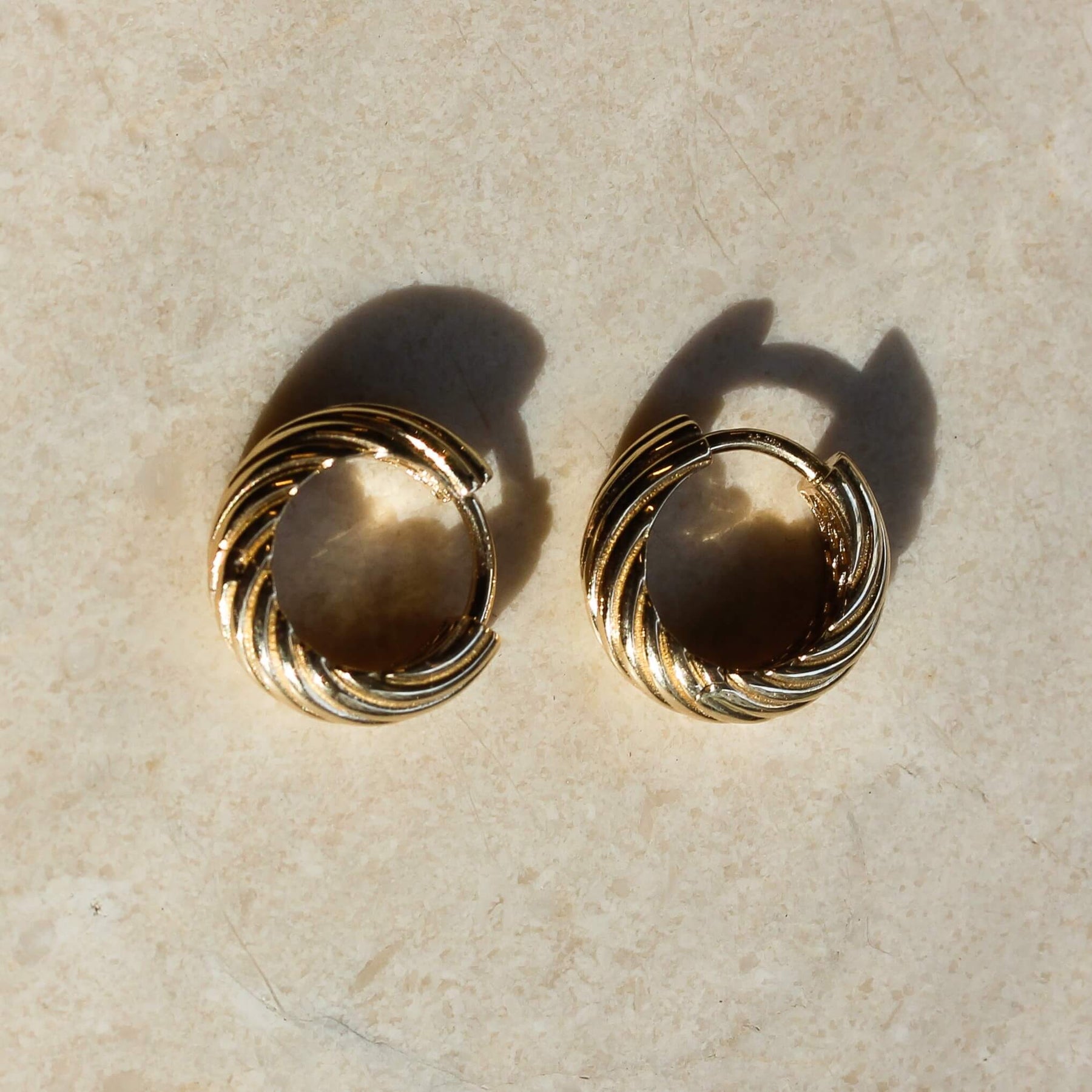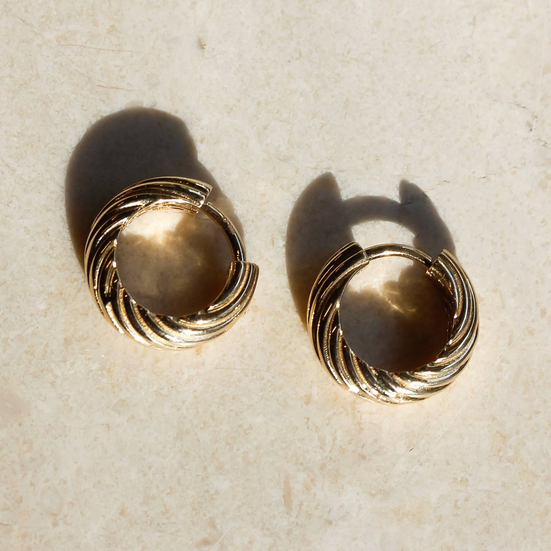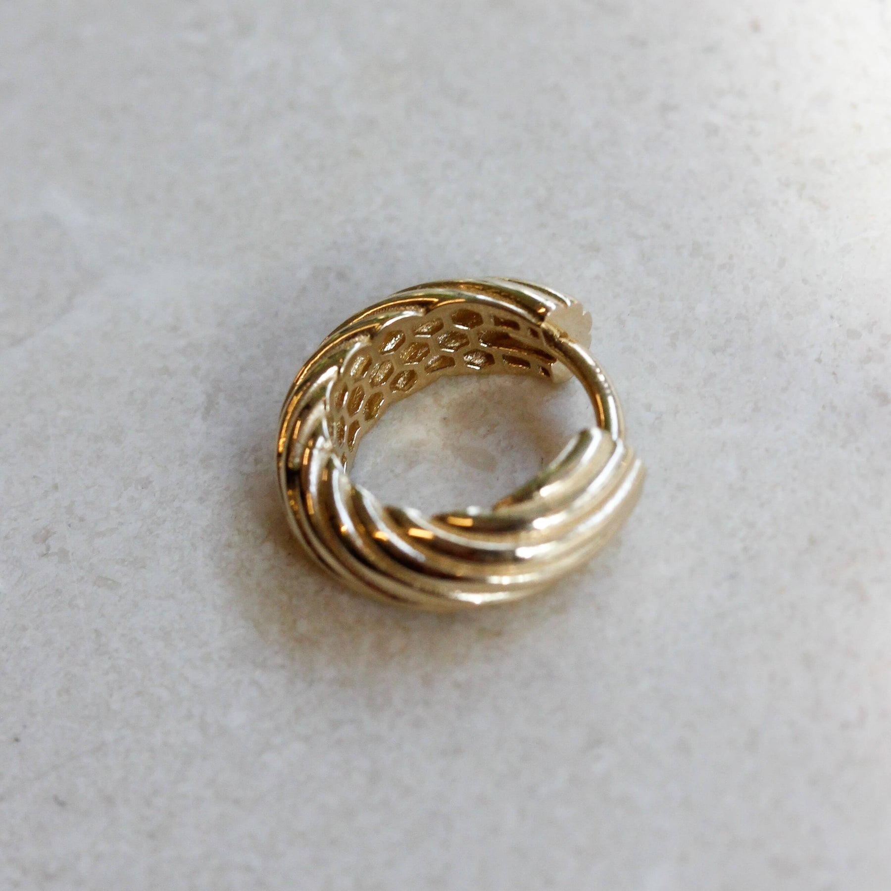 ✦ עגיל חישוק צ’אנקי עם דוגמת פסים באלכסון בסגנון וינטאג', עשוי זהב 14 קראט