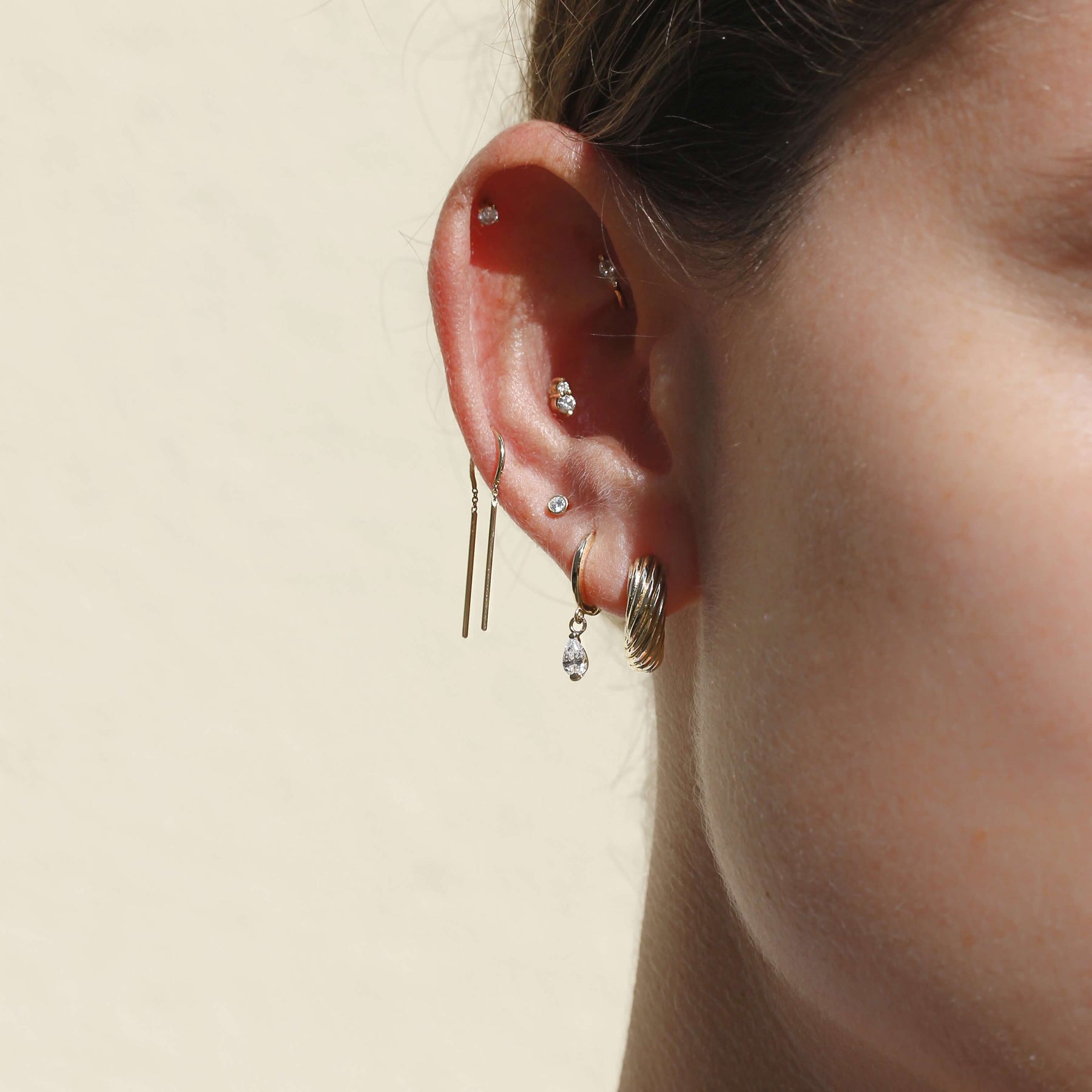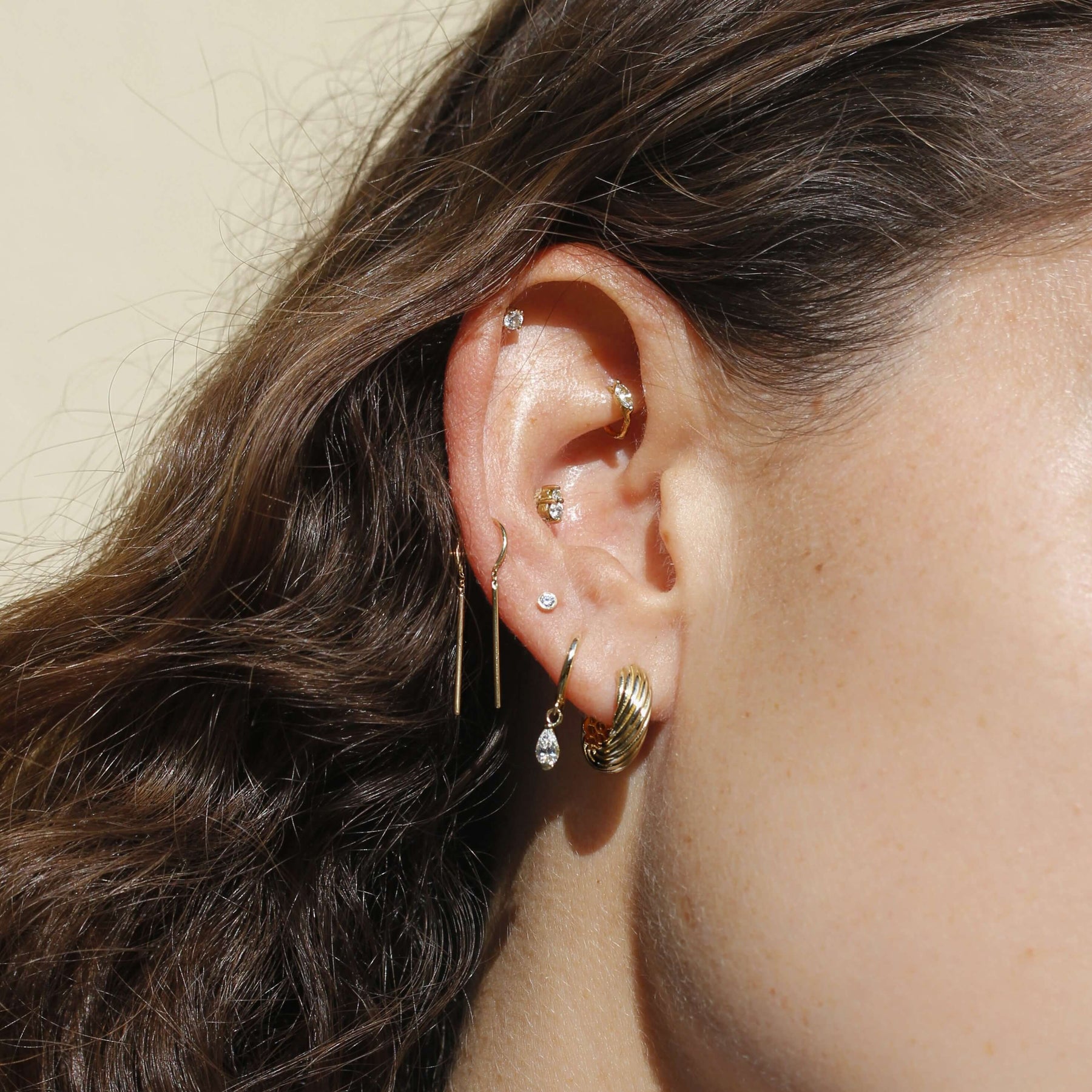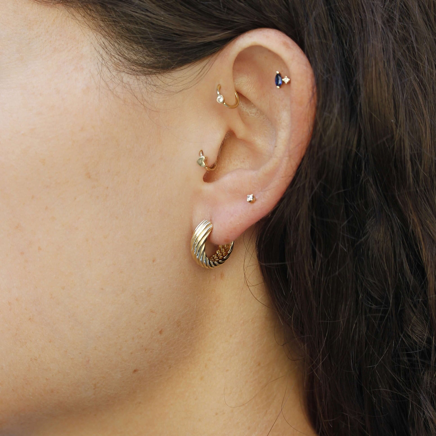 ✦ עגיל חישוק צ’אנקי עם דוגמת פסים באלכסון בסגנון וינטאג', עשוי זהב 14 קראט