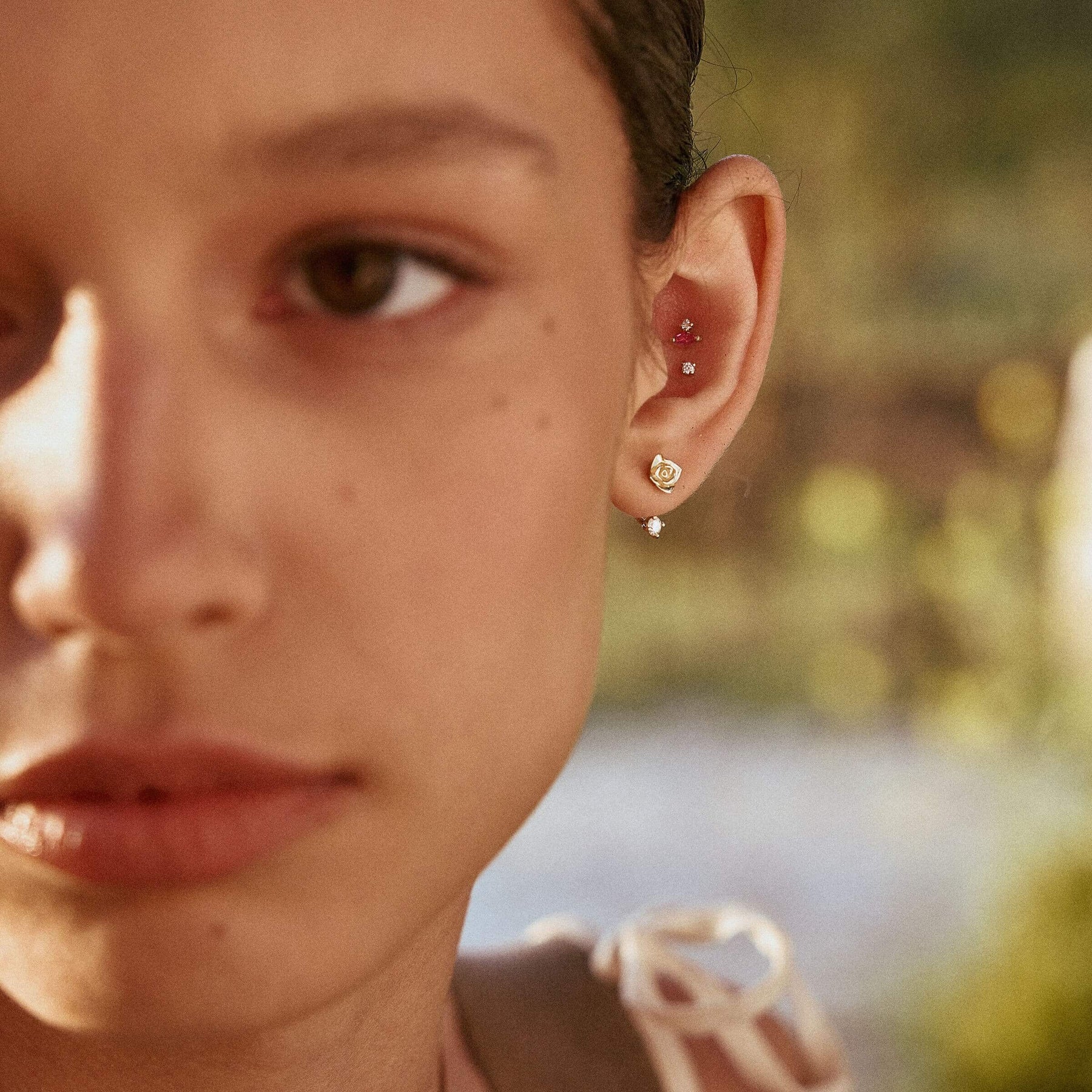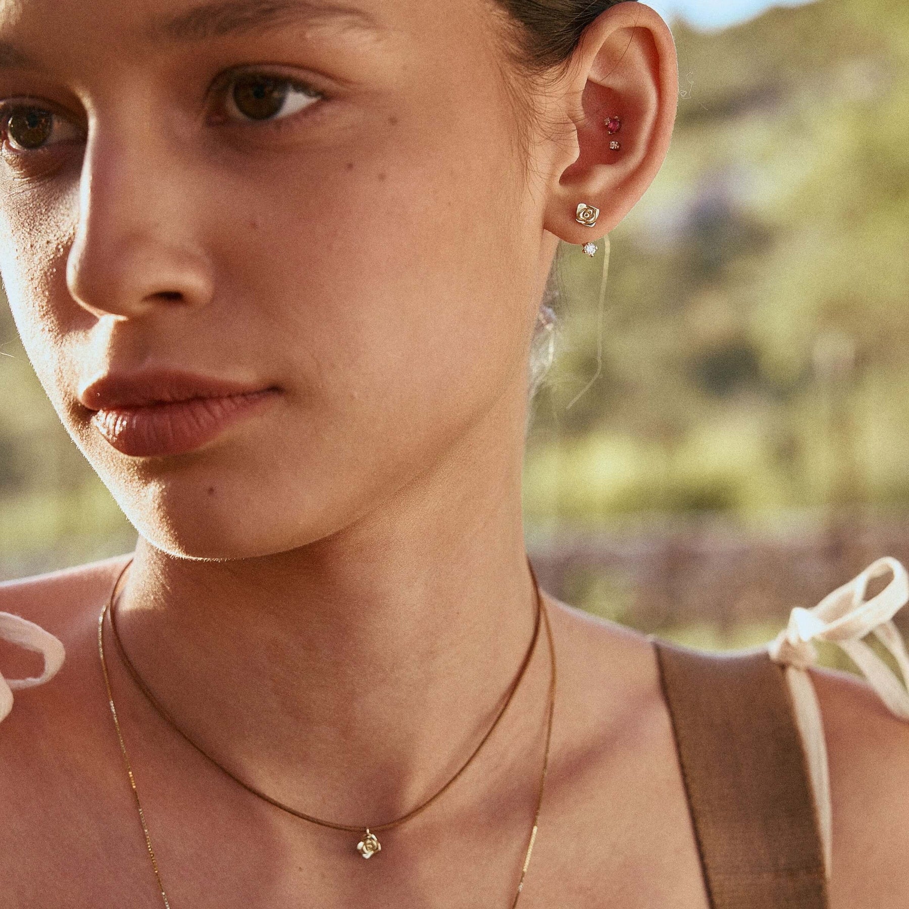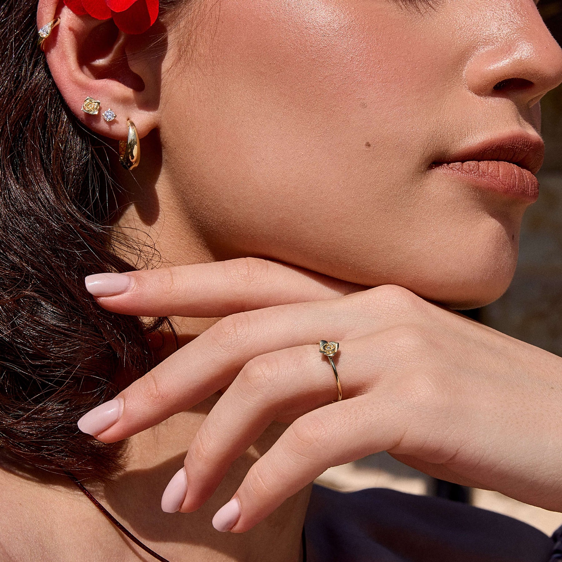✦ עגיל ורד עדין עשוי זהב 14 קראט