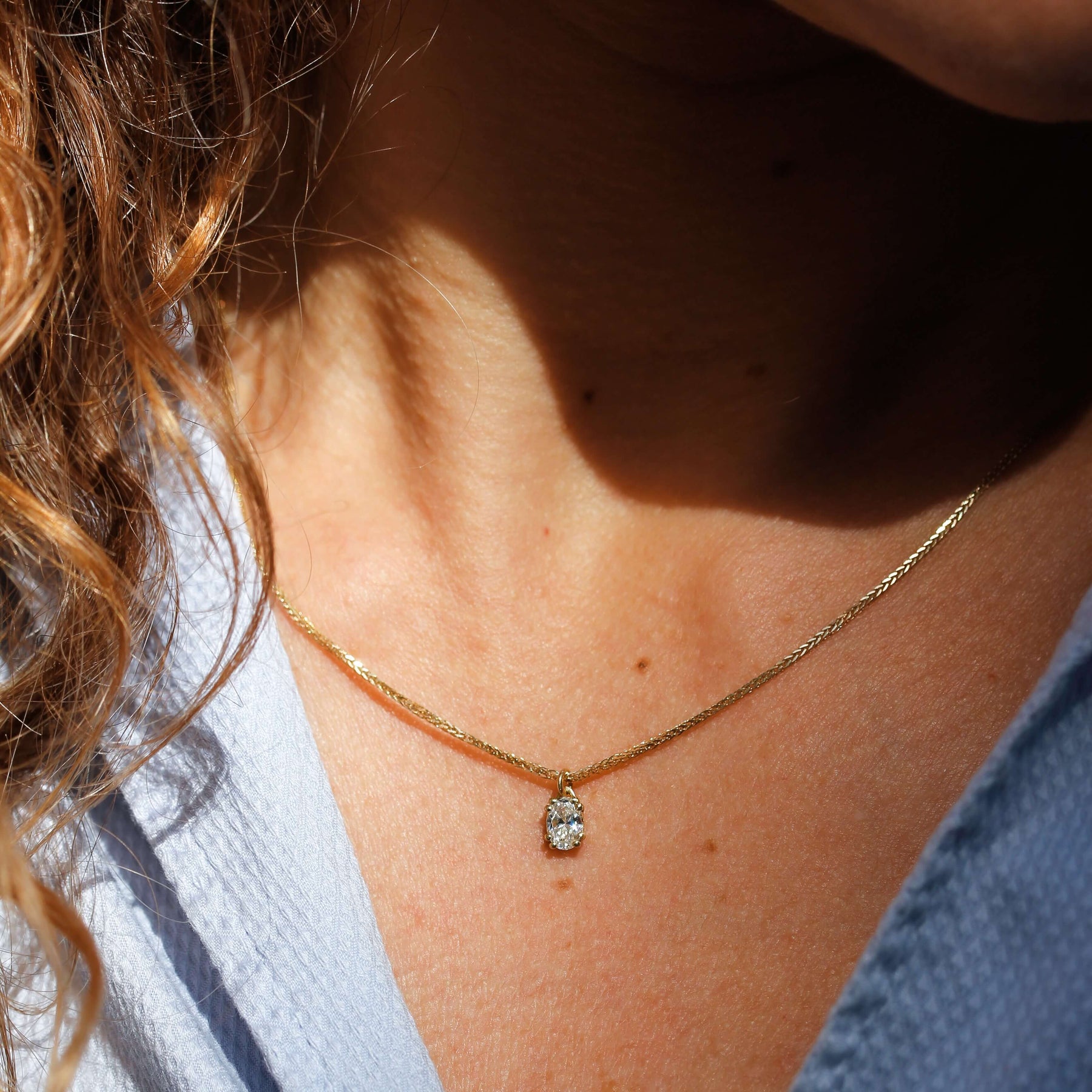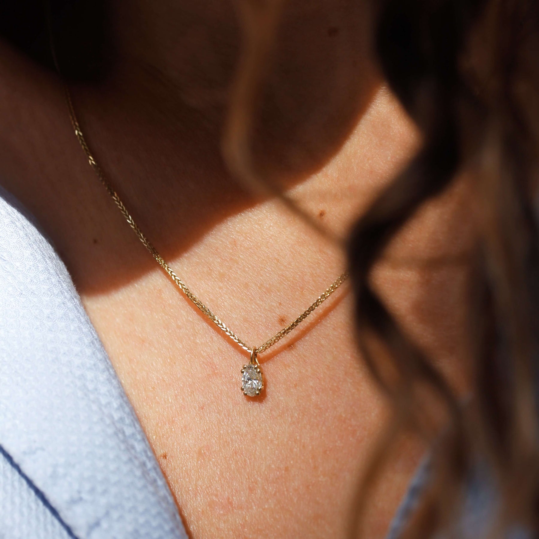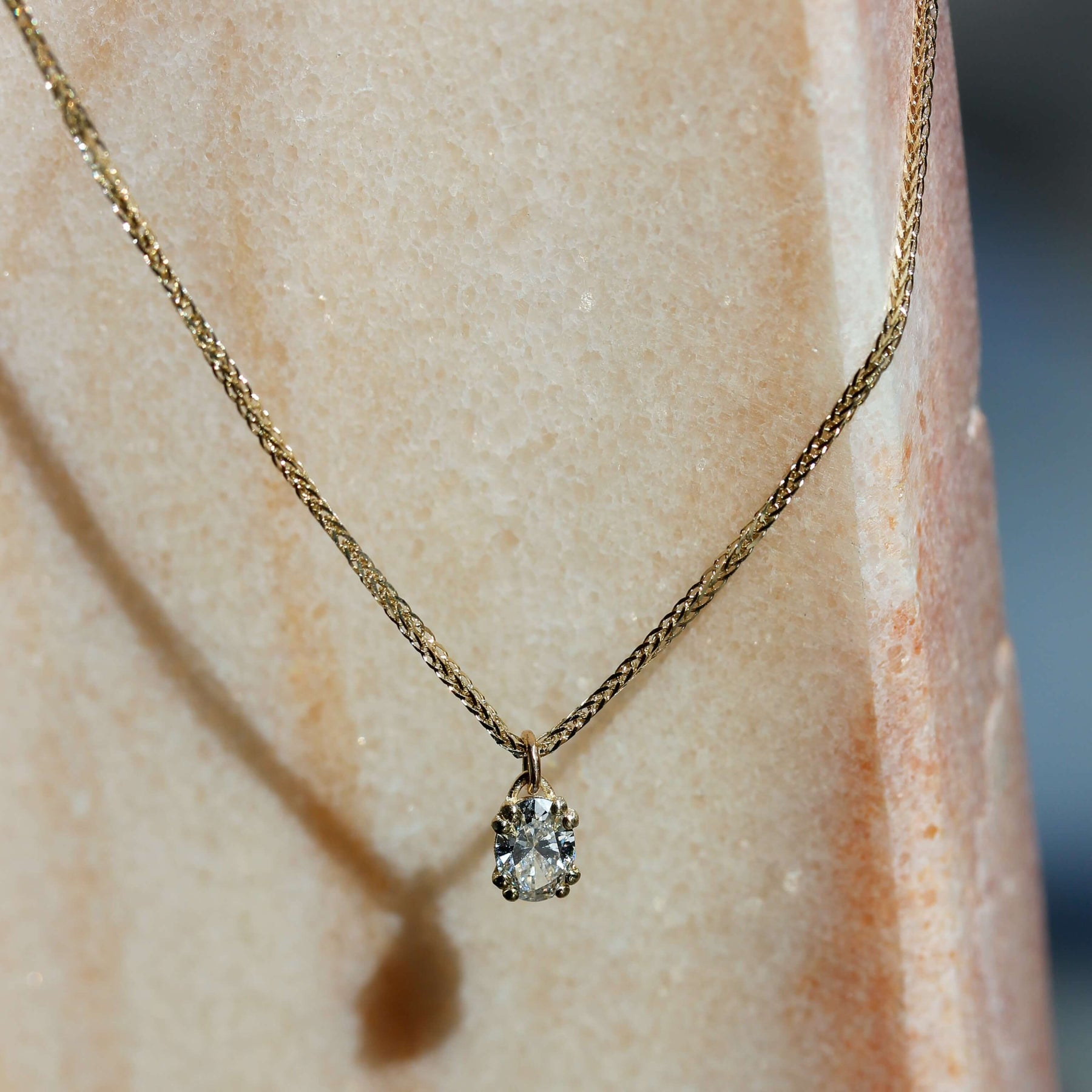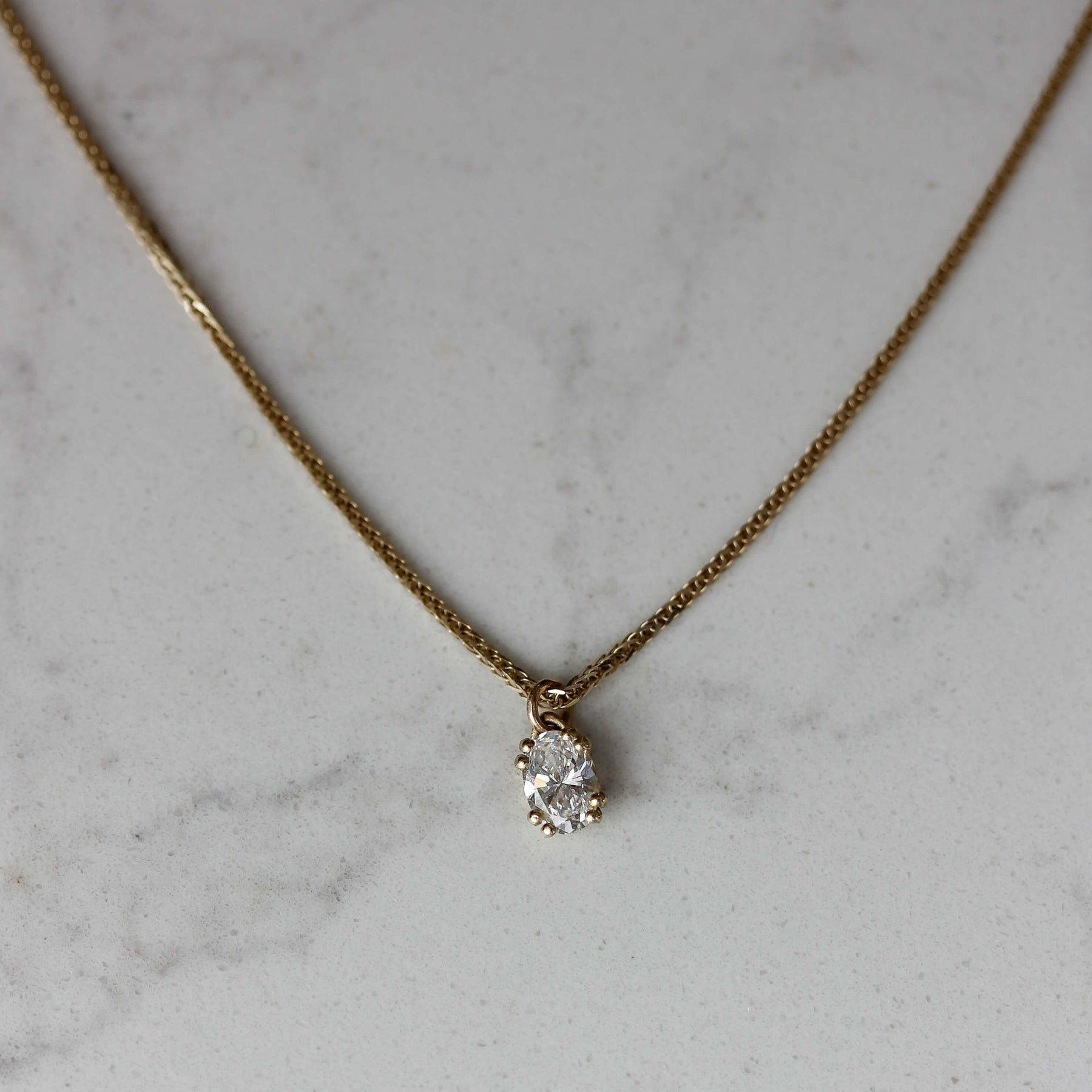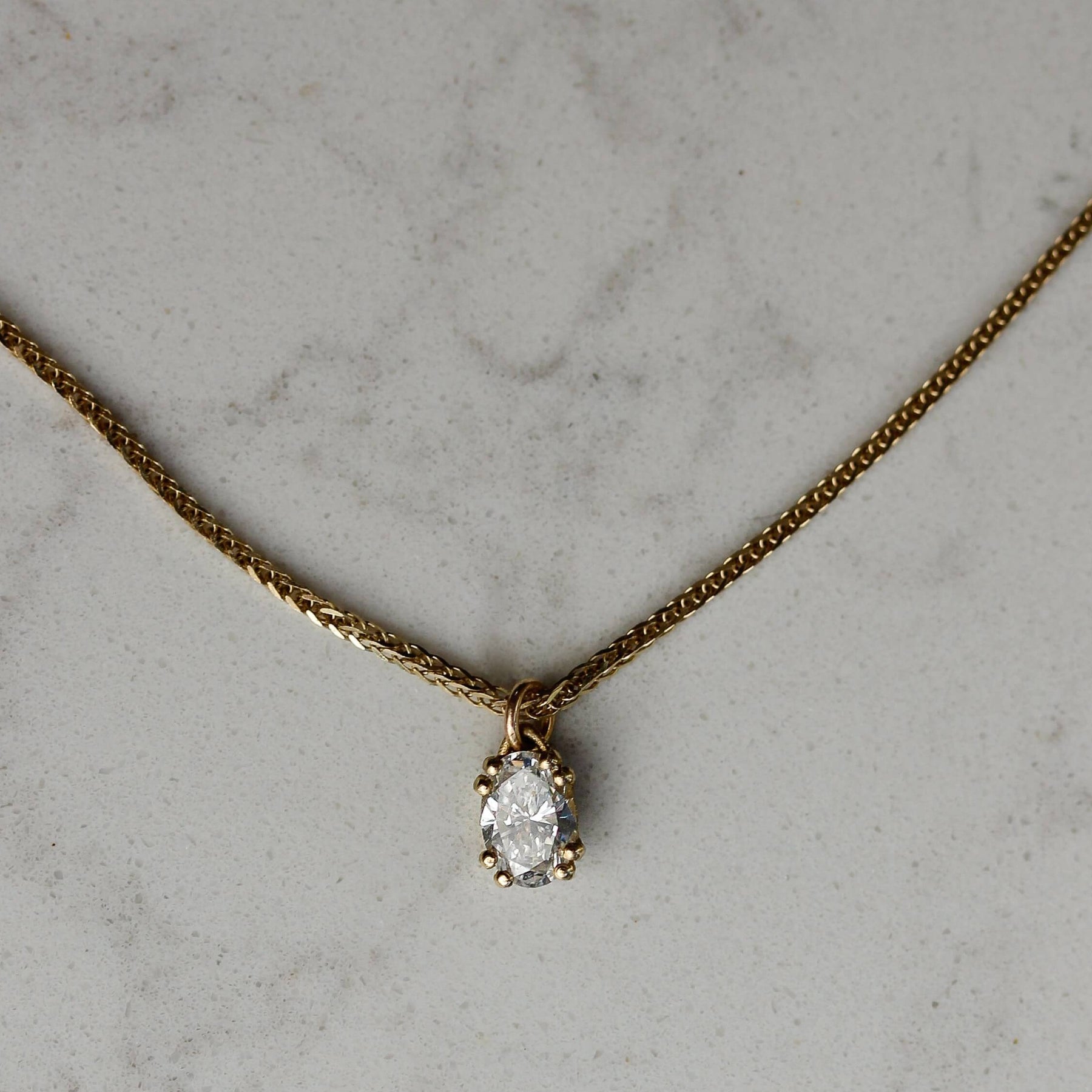 ✦ שרשרת עדינה וקלאסית משובצת יהלום אובלי עם 8 שיניים