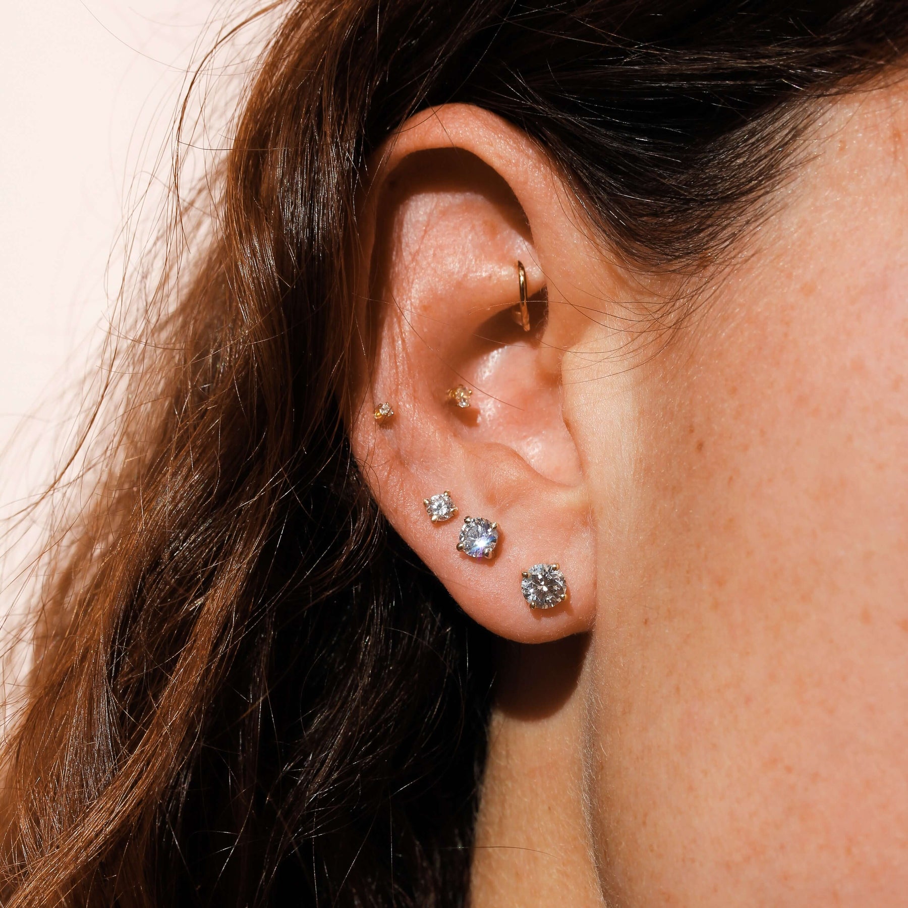 ✦ עגיל יהלום קלאסי צמוד לאוזן, עשוי זהב 14 קראט בשיבוץ יהלום מעבדה בחיתוך עגול