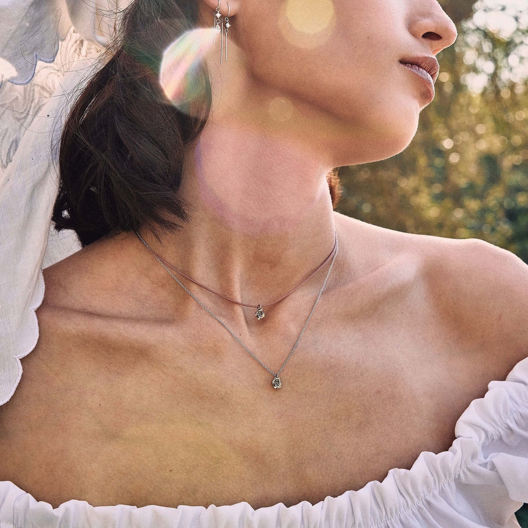 ✦ שרשרת קצרה שזורה על חוט עם תליון ורד עשוי זהב 14 קראט